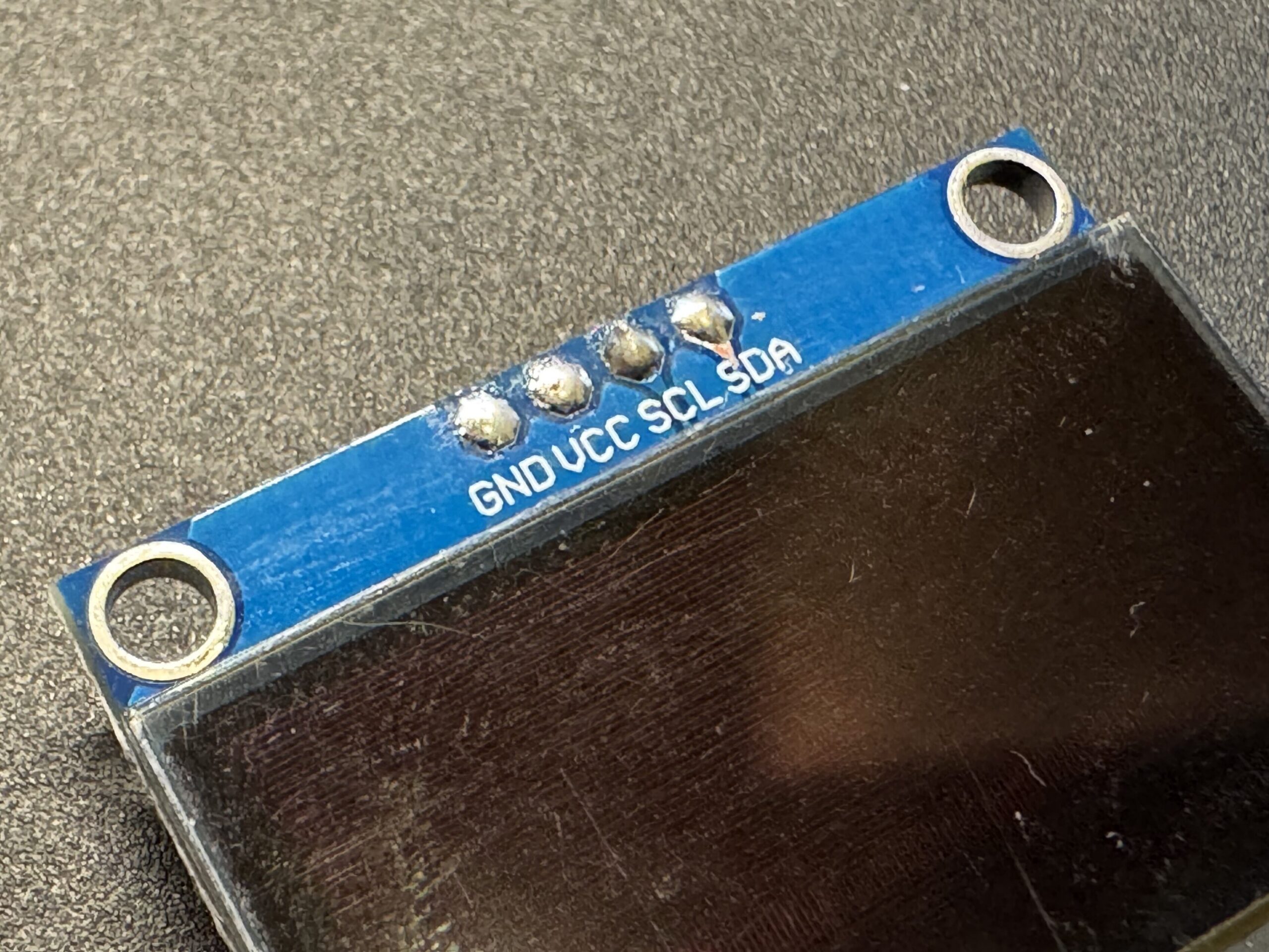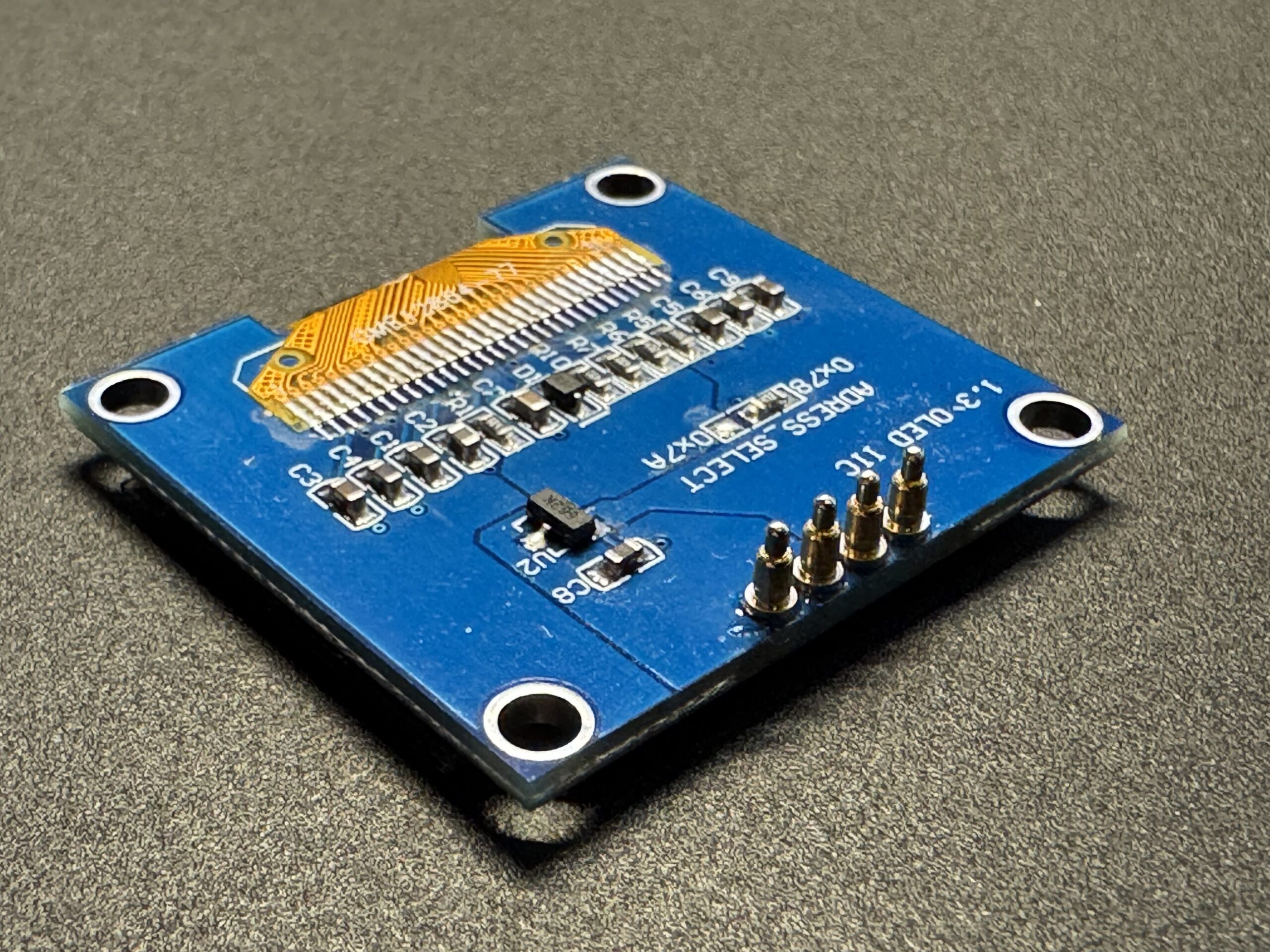 The display used is a 1.3″ SH1106 128×64 OLED module connected over I²C. It’s similar to the more common SSD1306 but has a slightly larger addressable area and internal memory buffer.